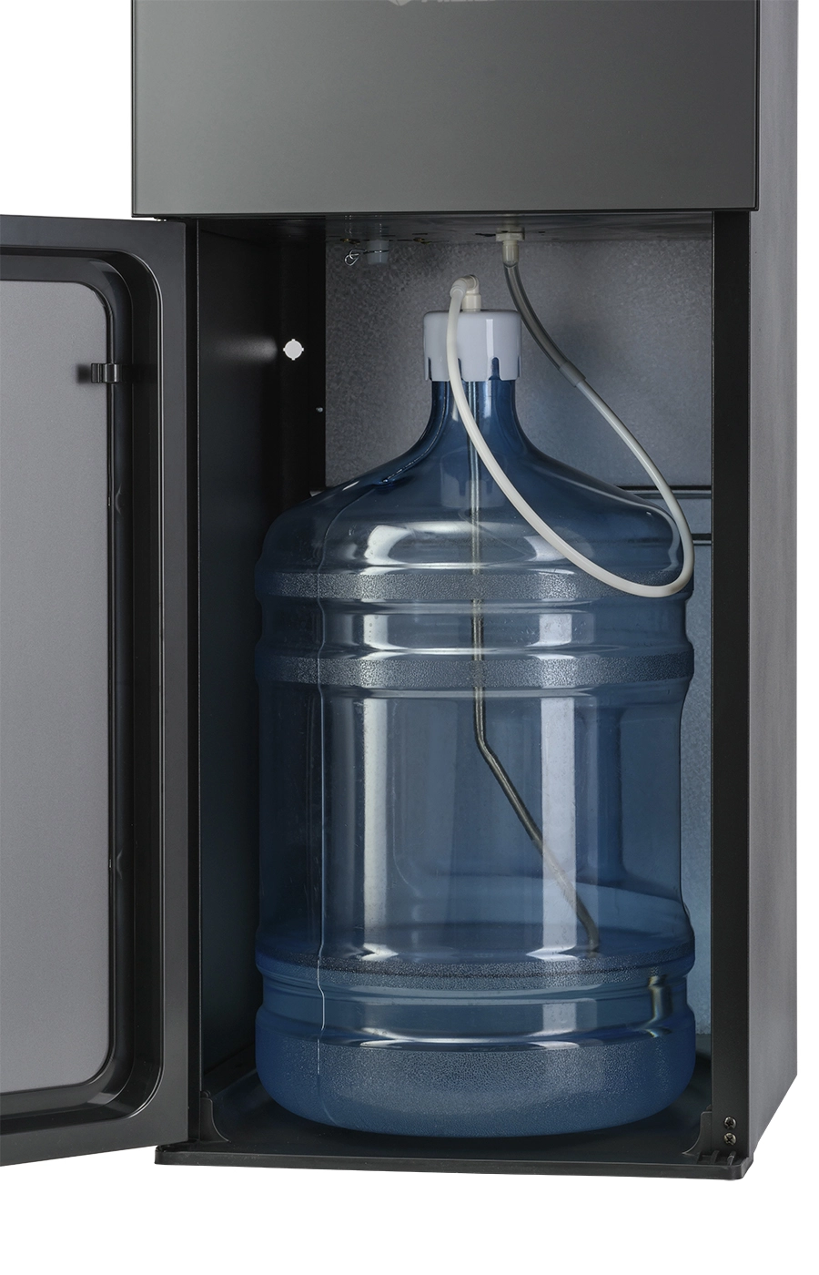 Чайный столик серого цвета TB83a-LD с электронным охлаждением. Нижняя загрузка бутыли. Управление с помощью сенсорной панели управления и сенсорных кнопок на столешнице. Шесть режимов нагрева воды, маркированные температурой: 45°С для детской молочной смеси, теплая вода 60°С, холодная вода 15°С, 90°С для кофе, 100°С кипяток, и функция поддержания температуры 40°-90°С. Уникальная система залива воды непосредственно в чайник снизу через клапан в столешнице. Функция подогрева. Чайники объемом 1л, Размер в собранном виде 370 x 340 x 1125мм. Высота до чайников 88,5 см. Размер электрического чайника: D -14 см, высота - 17,2 см. Размер стеклянного чайника: D -12,5см, высота - 13 см